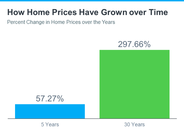While home prices vary by area, the national average shows the typical homeowner who’s been in their house for five years saw it increase in value by nearly 60%. And the average homeowner who’s owned their home for 30 years saw it almost triple in value over that time.