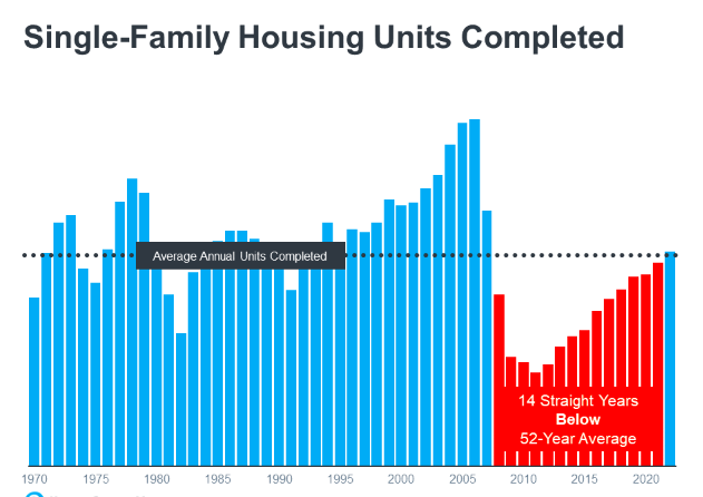 or 14 straight years, builders didn’t construct enough homes to meet the historical average (shown in red). That underbuilding created a significant inventory deficit. And while new home construction is back on track and meeting the historical average right now, the long-term inventory problem isn’t going to be solved overnight.