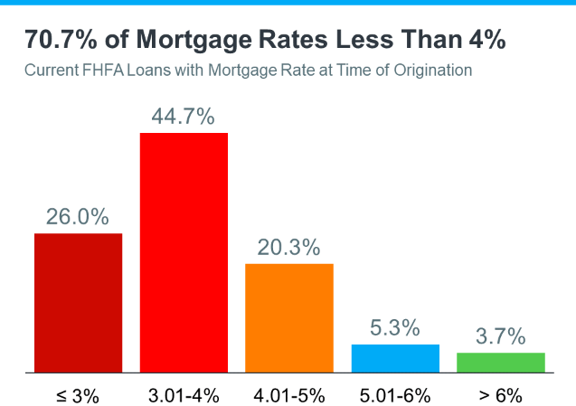 There are also a few factors at play in today’s market adding to the inventory challenge. The first is the mortgage rate lock-in effect. Basically, some homeowners are reluctant to sell because of where mortgage rates are right now. They don’t want to move and take on a rate that’s higher than the one they have on their current home. The chart below helps illustrate just how many homeowners may find themselves in this situation:
